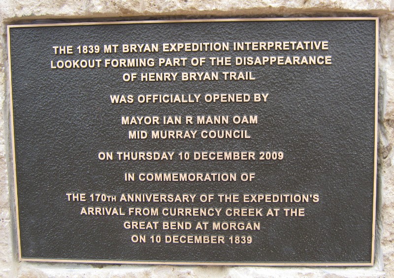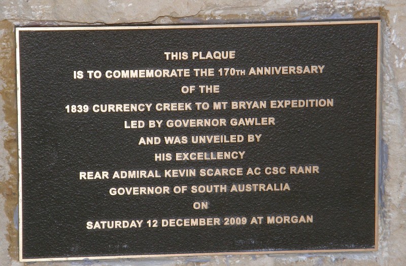was held at Morgan on the banks of the River Murray on 12th December 2009. The event was to commemorate the 170th Anniversary of the 1839 Mt Bryan Expedition led by Lt. Col. Gearge Gawler, Governor of South Australia and Captain Charles Sturt with a party of 13 other members, sailors and staff. The expedition departed from Currency Creek on November 26th by land and boat and arrived at Nor West Bend at Morgan on December 10th, 1839. As the expedition ended in tragedy surrounded by mystery and intrigue as to the disappearance of a young man on the expedition from England, Henry Bryan. Henry was a house guest of the Governor. Henry Bryan was never found, declared missing on a death certificate issued but never found to this day. The concept of the event was developed by the Morgan Community Development and Tourism Association supported by the Mid Murray Council. His excellency Rear Admiral Kevin Scarce AC CSC RANR, Governor of South Australia attended the